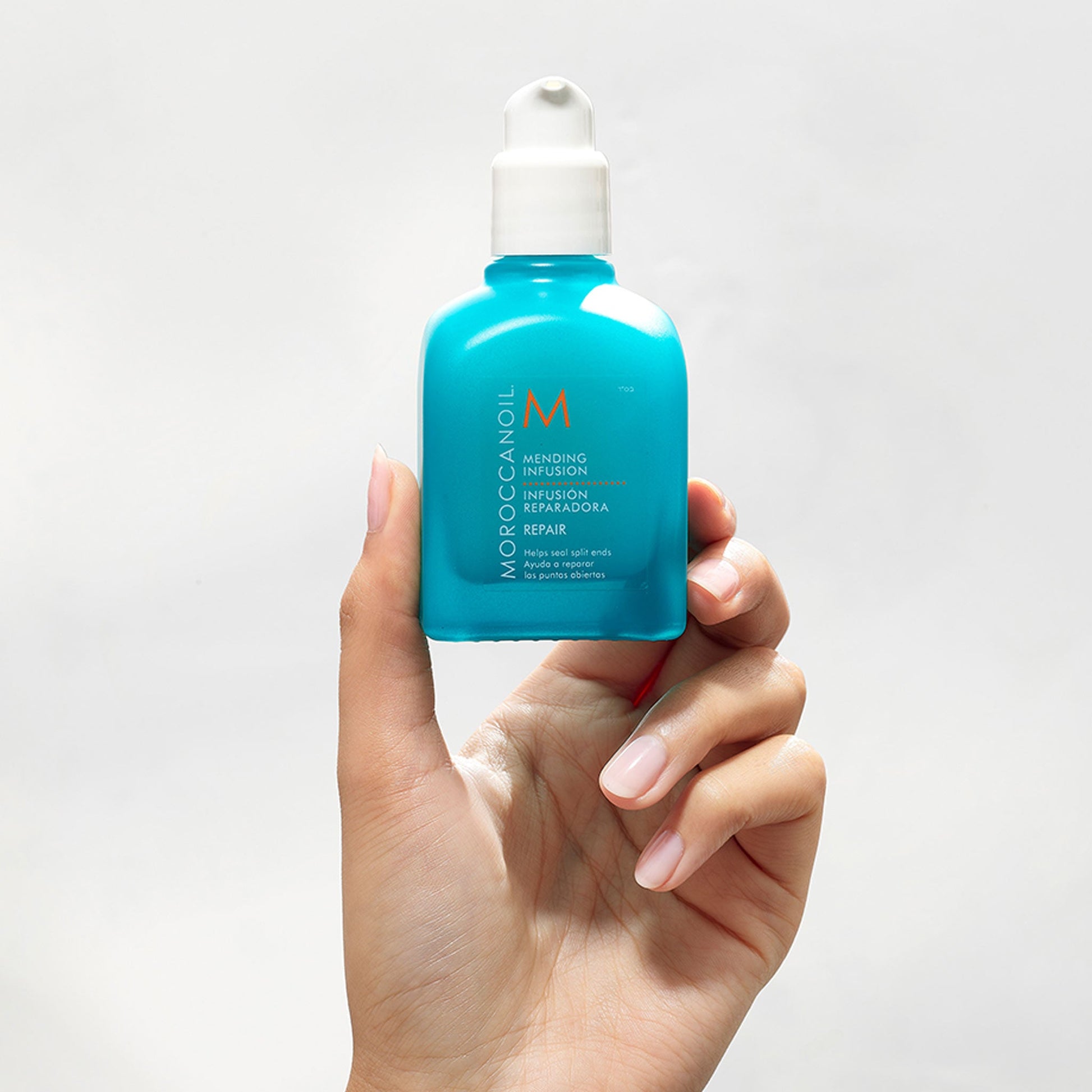 Revitalize your hair with the transformative powers of MOROCCANOIL MENDING INFUSION. This isn't just any split end solution—it's a luxurious treatment packed with vitamins and quinoa proteins that nourish, fortify, and rejuvenate your locks, giving them a fresh, just-cut look with every use.