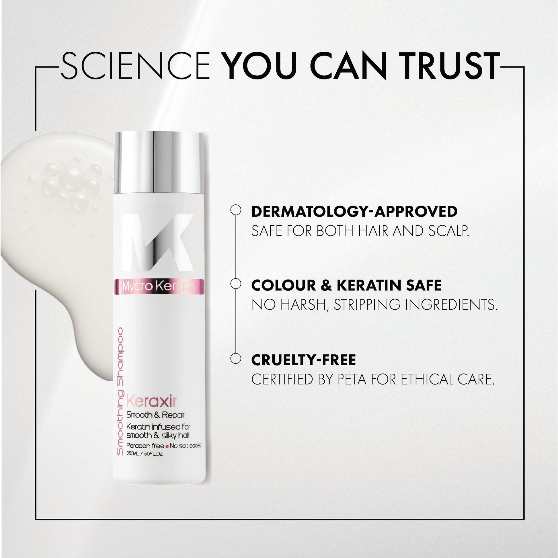 Unleash the full potential of your hair with the Mycro Keratin Keraxir Smoothing Shampoo and uncover the secret to salon-quality hair at home.