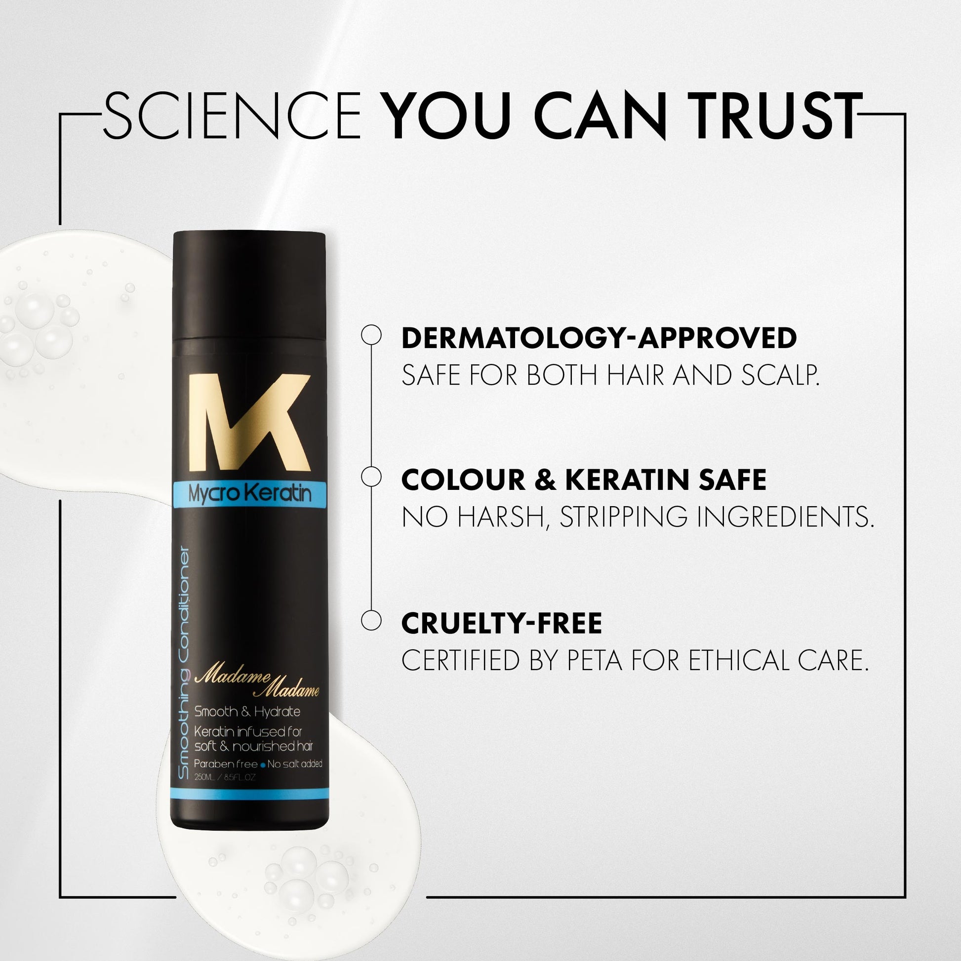 Experience the transformative power of the Mycro Keratin Madame Madame Conditioner and indulge your hair with unparalleled softness, strength, and shine. Rediscover the joy of having hair that looks stunning and feels incredibly silky every day.