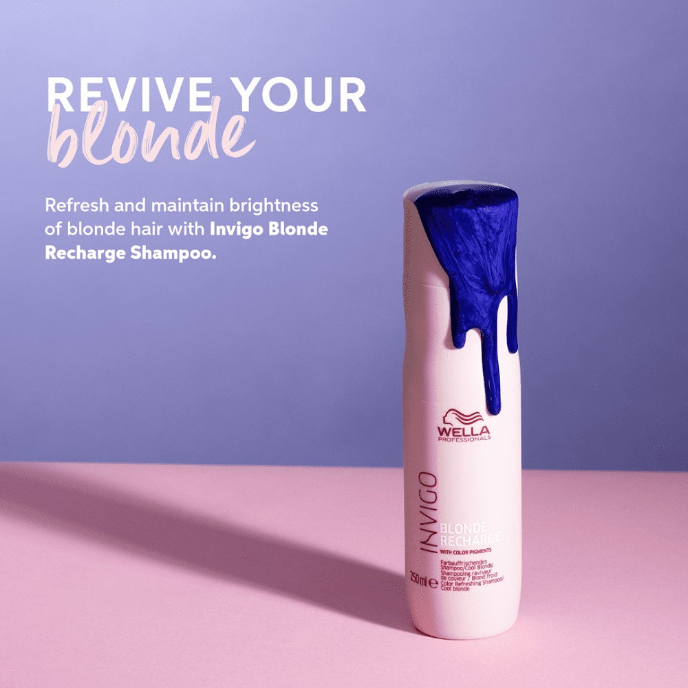 Introducing the Wella Invigo Blonde Recharge Cool Blonde Refreshing Shampoo, a must-have for anyone with highlighted, cool blonde, or silver hair. Transform your hair care routine with this luxurious shampoo designed to reinvigorate and enhance your blonde hues, keeping them fresh and vibrant.