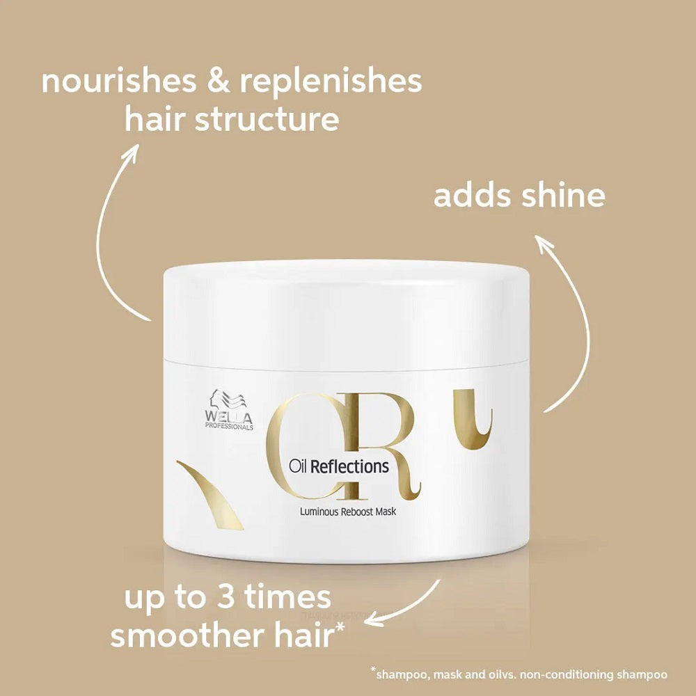 Unlock the secret to luminous hair with the Wella Oil Reflections Mask. Whether your hair is dry, dull, or damaged, this mask provides the hydrating boost you need, ensuring every strand is cared for and polished to perfection.